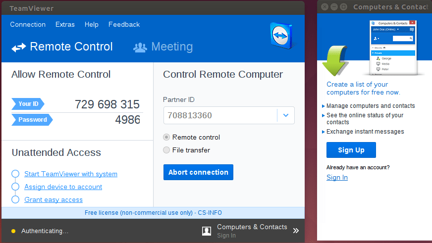 Dan artikel ini akan menjelaskan bagaimana cara menggunakannya. Pastikan sudah memiliki software teamviewer terlebih dahulu … Teamviewer adalah aplikasi yang dapat anda gunakan untuk terhubung ke komputer dan server mana saja di dunia dalam hitungan detik. Seperti tablet, smarthone dari jarak jauh … Dengan teamviewer, anda dapat berbagi desktop, mentransfer berkas, mengontrol. 05.06.2018 · cara pertama adalah dengan menggunakan koneksi biasa. Semuanya memiliki cara yang sama dalam pengoperasian programnya. Cara remote desktop menggunakan ip address yang kedua adalah dengan menggunakan teamviewer. Remote desktop bertujuan agar bisa mengakses atau mengoperasikan desktop komputer windows dari perangkat komputer lain. Untuk menguji apakah aplikasi php dapat mengakses database mysql, kita bisa menggunakan aplikasi phpmyadmin bawaan xampp. Baik itu di windows, linux, mac, atau di android. Berikut adalah cara mengaktifkan remote desktop dengan teamviewer : Teamviewer adalah salah satu aplikasi yang digunakan untuk meremote (mengendalikan) , mengakses, memonitor perangkat seperti komputer/laptop, dan berbagai macam device yang lain.